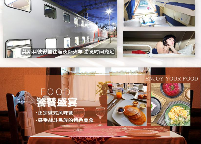 2.以上行程圣彼得堡-莫斯科火车时间最终以实际团队安排时间为准,如遇夜火车时间调整行程内容,但质量不变。详细的俄罗斯旅游注意事项和确认行程、领队联系电话、集合地点等内容会在出团前以出团通知书的形式告知;