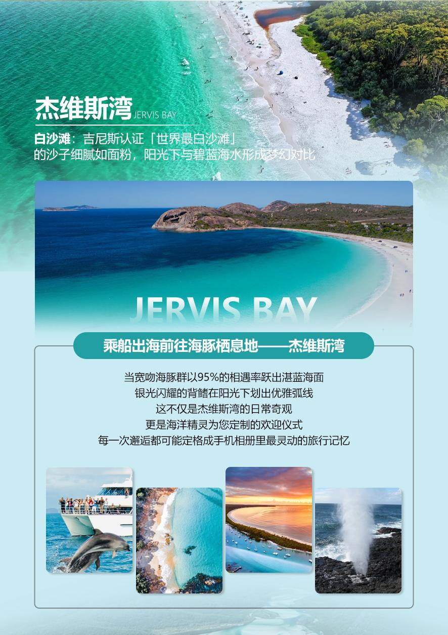 【悉尼海港大桥】远眺号称世界第一单孔拱桥的宏伟大桥,您将途径此桥与举世闻名的悉尼歌剧院隔海相望。【悉尼大学】(入内),成立于 1850 年,位于澳大利亚新南威尔士州最大城市悉尼,属五星级大学。悉尼大学是澳洲八大之一,同时也是澳洲 6 所砂岩学府之一。历史上共培养过六位澳大利亚总理和五位诺贝尔奖——包括 2 名化学奖、2 名生理医学奖和 1 名经济学奖得主。悉尼大学主校区位于悉尼内城区,市中心西南,其哥特式的主楼和其它历史建筑是重要的文物遗产。午餐后前往澳大利亚后花园【杰维斯湾】位于澳大利亚新南威尔士州东海岸,它是一个以其令人惊叹的纯白沙滩、清澈见底的湛蓝海水和丰富的海洋生物而闻名的天然海湾。杰维斯湾是澳大利亚海军的重要基地,同时也是一片受保护的海洋公园,是观赏野生海豚和冬季迁徙的座头鲸的绝佳地点。