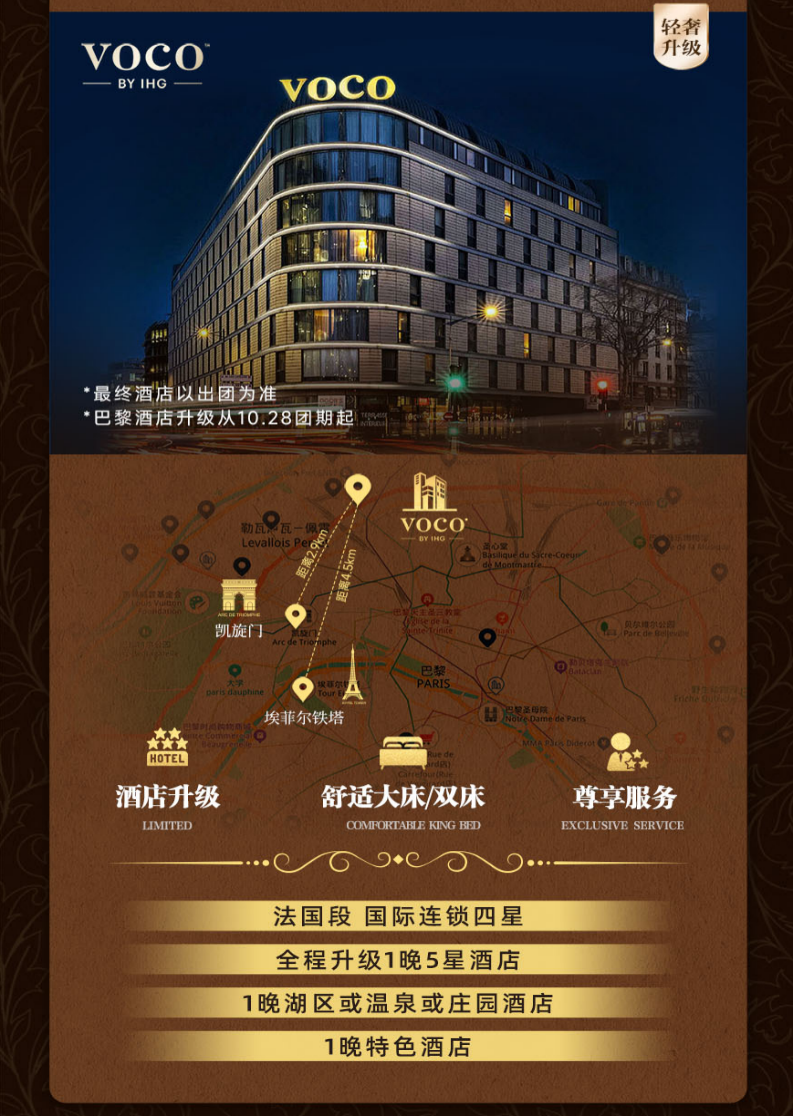法国段国际连锁四星全程升级1晚5星酒店1晚湖区或温泉或庄园酒店