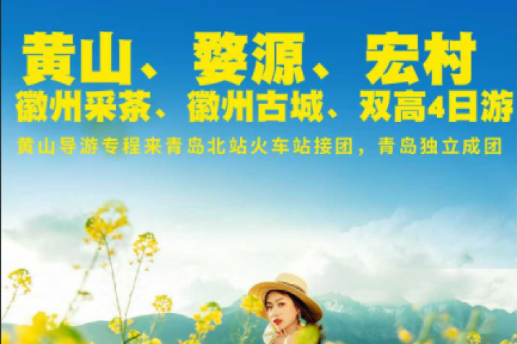 婺源篁岭万亩油菜花海、千岛湖、宏村徽州茶园采茶、双古街双高四日游开往春天的列车