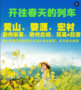婺源篁岭万亩油菜花海、千岛湖、宏村徽州茶园采茶、双古街双高四日游